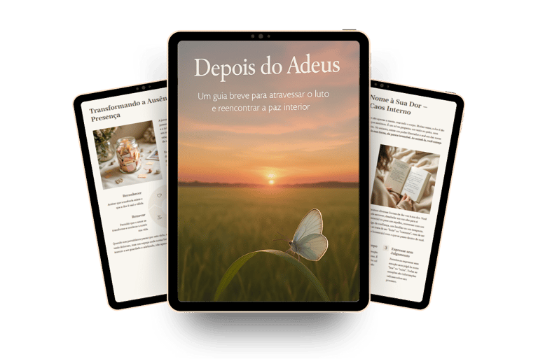 Você não precisa enfrentar o luto sozinho(a). Este guia é o seu companheiro em uma jornada de acolhimento e transformação. Com uma leitura leve e humana, você terá em mãos as ferramentas práticas para atravessar a dor, transformar a saudade em uma memória cheia de vida e, finalmente, redescobrir a sua paz interior.